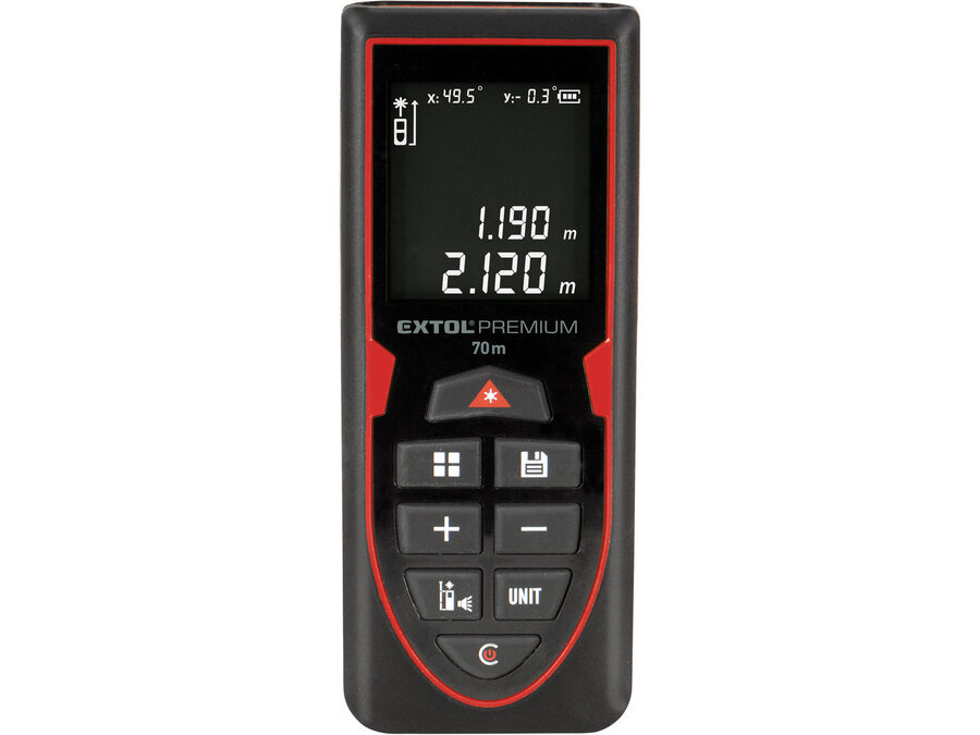 EXTOL PREMIUM 8820047 Merač vzdialenosti laserový do 70m, ±2mm, zelený laser, LCD