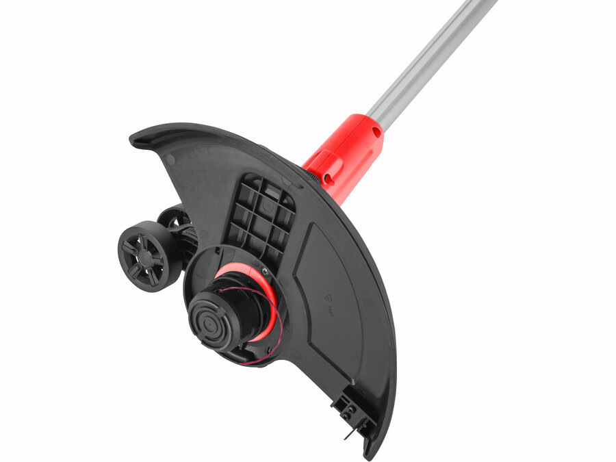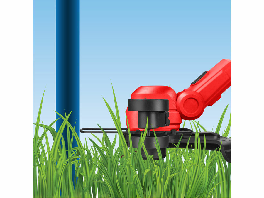 Strunová akumulátorová kosačka je ideálna na pravidelnú údržbu záhradného trávnika, precízne zarovnanie okrajov a kosenie v ťažko dostupných miestach, napr. pri obrubníkoch, pod lavičkami či okolo stromov a kríkov. Na kosačke je možné nastaviť uhol žacej hlavy a tiež ju otočiť o 90° kolmo k zemi, čo uľahčuje kosenie pri okrajoch trávnikov, pozdĺž chodníkov, príjazdových ciest a pod. Teleskopická rukoväť sa dá predĺžiť až o 23 cm, aby sa kosačka prispôsobila používateľom rôznych výšok a umožnila pohodlnú prácu. Strunu môžete predĺžiť dvoma spôsobmi – manuálne stlačením tlačidla na žacej hlave alebo jednoducho poklepom o zem počas práce. Ochranný kryt so zabudovaným nožom navyše automaticky oreže strunu na optimálnu dĺžku. Kosenie pozdĺž plotov, múrov či stromov uľahčuje praktický sklopiteľný dištančný oblúk, ktorý zároveň chráni sekaciu strunu pred nadmerným opotrebením. Napájanie z batérie eliminuje starosti s napájacím káblom, kosačka je tak ľahšia, tichšia a manipulácia s ňou je podstatne pohodlnejšia. Pogumovaná rukoväť zabraňuje vyšmyknutiu, tlmí vibrácie a zvyšuje komfort pri držaní.