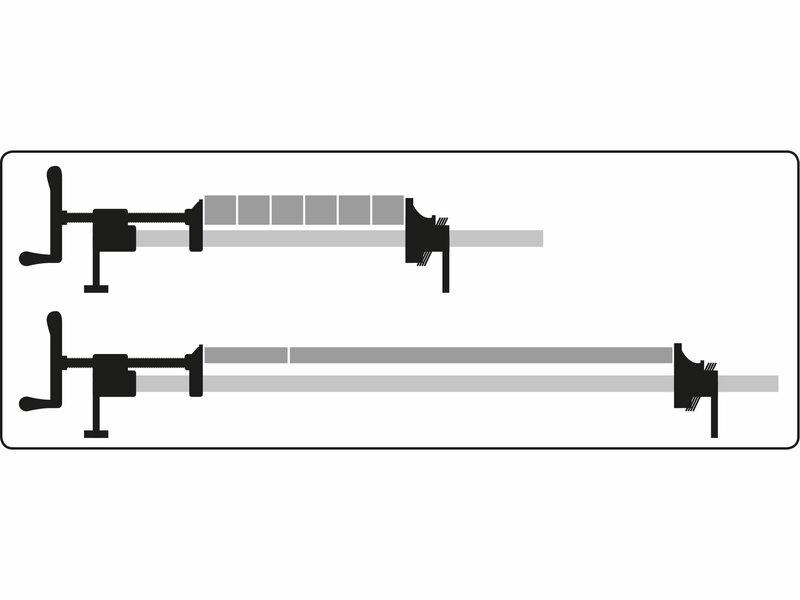 - požadovanú dĺžku je možné dosiahnuť použitím ľubovoľnej 3/4" rúrky s odporúčanou hrúbkou steny min. 2,4mm, na jeden koniec rúrky je nutné vyrezať vonkajší závit DN20 a túto časť zafixovať do pevného konca svorky, druhá posuvná časť, ktorej pozícia sa nastavuje pomocou pružinovej aretácie, umožňuje nastaviť pracovnú dĺžku svorky
