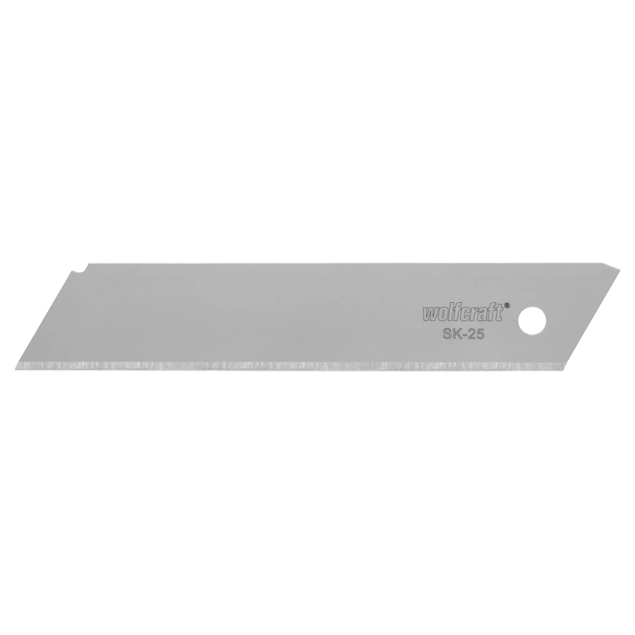 Bezpečnostné čepele so šírkou 25 mm bez odlamovacích segmentov poskytujú optimálnu bezpečnosť pri práci s nožom s odlamovacou čepeľou, ako aj s predĺženou čepeľou - ideálne napríklad na rezanie izolačných dosiek. Sú kompatibilné s komerčne dostupnými nožmi s odlamovacou čepeľou so šírkou 25 mm s rukoväťou. Možno ich bezpečne skladovať v priehľadnom plastovom boxe.