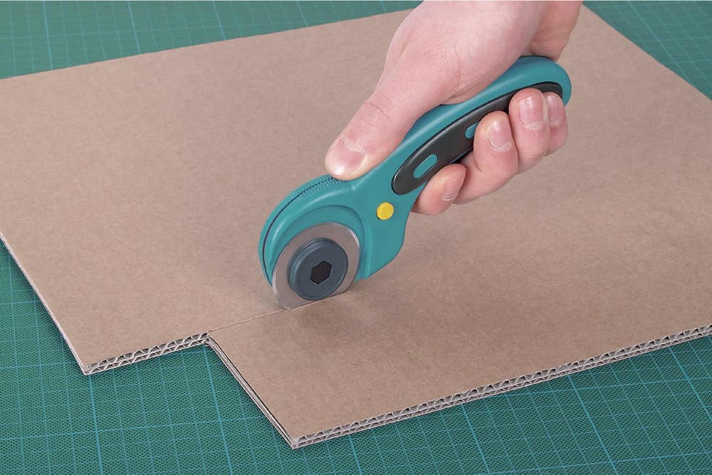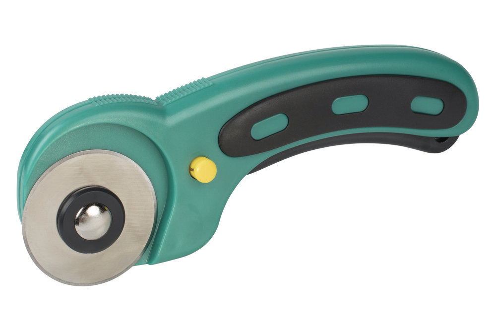 Popis produktu: Nôž s kolieskom je výkonný pomocník pri domácom šití a pre domácich majstrov. S 45 mm čepeľou môžete bez problémov rezať látky, papier a kožu a dosiahnuť presné okraje rezu. Ergonomicky tvarovaná rukoväť zabezpečuje presné vedenie pozdĺžnych a zakrivených rezov po požadovanom obryse. Pod rukoväťou sa nachádza páka na zablokovanie a zasunutie rezacieho kotúča. Prídavný uzamykací gombík nástroj bezpečne uzamkne. Otočný gombík slúži na jednoduché uvoľnenie kotúča na výmenu bez použitia náradia.