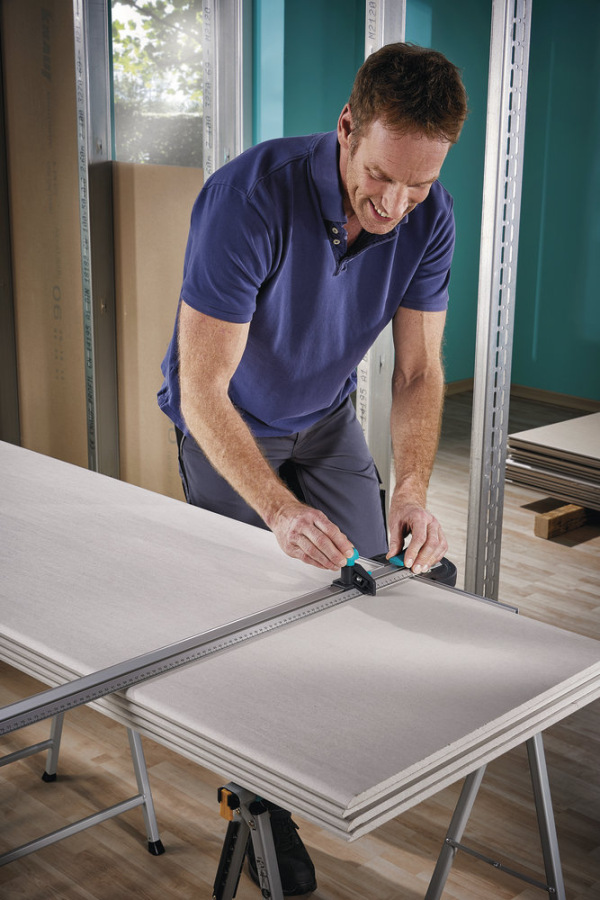 pomůcka při řezání a značení přesných příčných a podélných řezů sádrokartonových desek