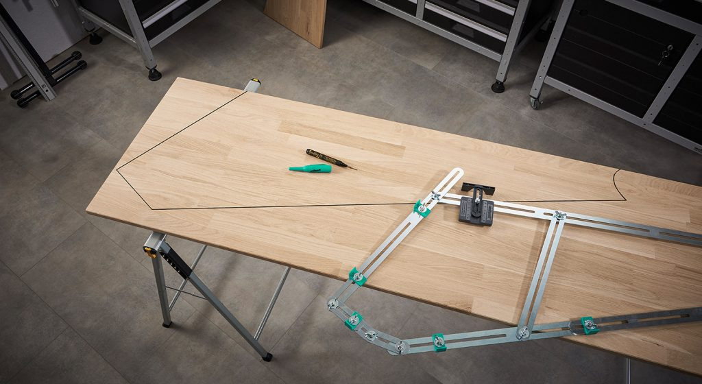 Výstavba alebo renovácie schodisko patrí k tým zložitejším porjektům, s ktorými sa remeselník alebo nadšený kutil stretáva. Vyvinuli sme preto precízne prípravok pre maximálne uľahčenie práce sa schodnicami. So schodiskový šablounou wolfcraft 5210000 môžete ľahko nastaviť jednotlivé rozmery každej schodnice vrátane zložitých tvarov uchytenia u základne. A nezastaví sa ani pred oblinami alebo komplikovanejšími uhly. Skrátka ľahko a presne stačí pomocou motýlkových matíc šablónu prispôsobiť na schodnici a jednoduchú aretáciou potom môžeme požadovaný rozmer preniesť na materiál a to vrátane požadovaného presahu. Aj keď je každá schodnice originál, s našou Sabon je ich výroba hračkou. A využiť ju môžete aj pri pokládke koberca alebo inej podlahovej krytiny.