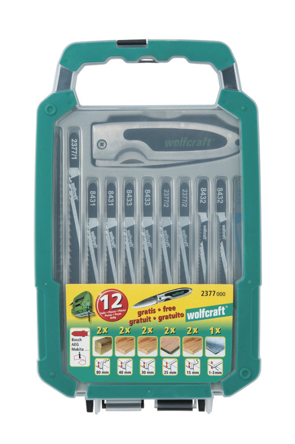 Wolfcraft Sada pílových listov do priamočiarej píly T-stopka + vreckový nôž wolfcraft 2377000