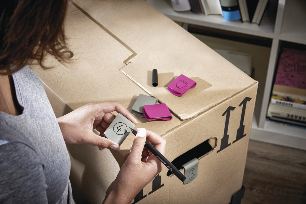 Na rýchle označenie sťahovacích kartónov a ich pohodlné naplnenie a vyprázdnenie.