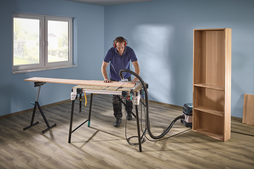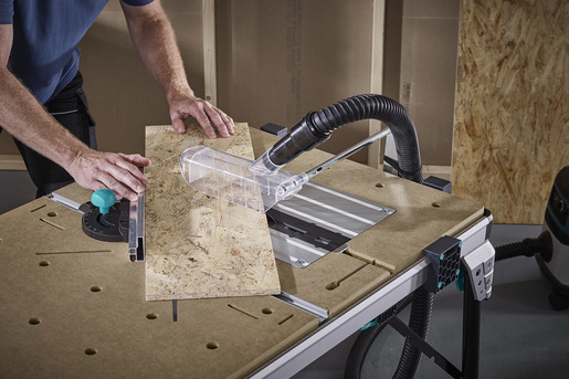 Multifunkčný strojné stôl MASTER cut 2600 spája 6 funkcií v jednom výrobku. Dá sa používať ako stolové kotúčová píla, ako stôl na priamočiaru alebo kapovaciu a pokosovú pílu, ďalej ako pracovné stanice a - s voliteľne dodávaným príslušenstvom - ako frézovacie stôl a stanice pre vedenú ručnú kotúčovú pílu. Vďaka tomu je MASTER cut 2600 ideálny pre všetky remeslá vo vnútornej výstavbe. Vďaka samostatne dodávanému a vyberateľnému rozpěrnému klinu je jedným z mála strojných stolov, ktoré môžete používať aj s ručnými kotúčovými pílami bez rozperných klinov. Nástrojová doska je vybavená bezpečnostným zaisťovacím mechanizmom, ktorý spoľahlivo upevní nástroj k doske. Navyše je výškovo nastaviteľná, a ponúka Vám tak aj u ťažšieho nástroje rovný prechod do pracovnej dosky. Stôl MASTER cut 2600 je nezávisle na výrobcovi kompatibilné s mnohými bežnými nástrojmi. Bezpečnostný vypínač je umiestnený zboku stola, takže môžete používané nástroje zapínať a vypínať rýchlo a bezpečne. Pri použití ako stolová kotúčová píla Vám pozdĺžna zarážka umožní vedené rezy až do šírky rezu 625 mm. Uhlová zarážka je vybavená pružinovými vyrovnávacími a klznými prvkami. Môžete s ňou pohodlne vykonávať sériové uhlové rezy až do +/- 60 °. Štyri upínacie bloky, ktoré sú súčasťou dodávky, Vám umožní silné upevnenie obrobkov pomocou svoriek k profilu stolu. Priloženým imbusovým kľúčom sa dajú upínacie bloky posúvať, aby vhodne priliehali k obrobku. Navyše slúži ako stojné nohy sklopeného stola, takže ten sa potom dá skladovať bez opieranie a zaberie len minimum miesta. Vďaka svojej nosnosti až 120 kg unesie tento strojné stôl bez problémov aj dosky z dreveného masívu. Takto budete s jednoduchým jedným výrobkom bezpečne a efektívne pripravení na takmer všetky výzvy, súvisiace s udržiavaním svojho domu a domova.