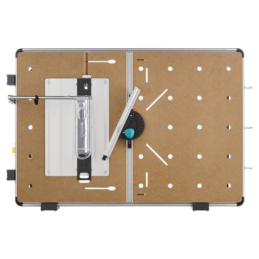 vďaka multifunkčnému usporiadanie otvorov na doske stola je kompatibilný s bežnými kapovacím a pokosovými pílami
