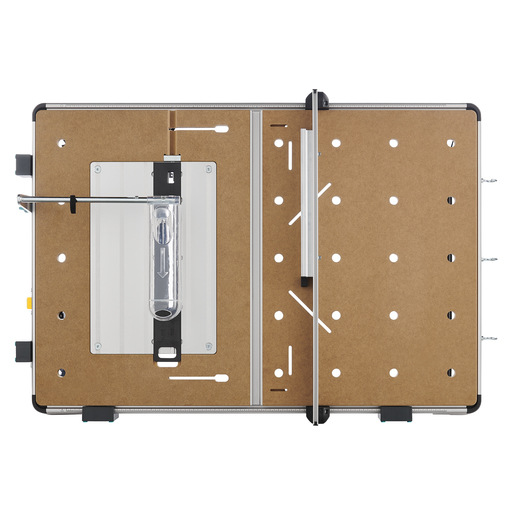 pre horné frézky s max. 230 V, max. 1800 W, priemerom základovej dosky max. 180 mm, výškou základovej dosky max. 40 mm a priemerom frézy max. 27 mm; použitie len s pozdĺžnou frézovacie zarážkou (č. tovaru 6901000)!