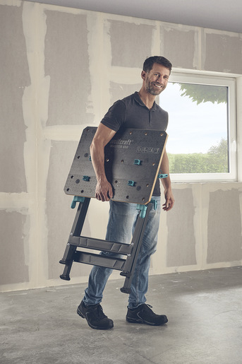 MASTER 650 ERGO je výškovo nastaviteľný, mobilný upínací stôl, ktorý vám umožní pracovať flexibilne a bez namáhania chrbta. Vďaka pracovnej doske otočnej až o 65 ° ho možno použiť ako upínací stôl aj ako pracovný stôl. Optimálnu pracovnú výšku si môžete individuálne nastaviť od 780 – 950 mm. So štyrmi dodanými plastovými čeľusťami na rôzne možnosti upínania a dvoma rúrkovými svorkami na upínanie okrúhleho materiálu môžete svoje obrobky spoľahlivo držať na mieste. MASTER 650 ERGO ponúka rozstup 110 mm medzi doskami stola a až 410 mm medzi plastovými upínacími čeľusťami. S nastavením maximálnej výšky môžete bez problémov upínať aj obrobky do šírky 80 mm. Vďaka dodávanej vkladacej doske môžete potiahnutú dosku stola z MDF s certifikáciou FSC so skosenými hranami behom chvíľky rozšíriť na súvislú pracovnú plochu 650 x 490 mm a sú tak vybavené aj pre väčšie obrobky.