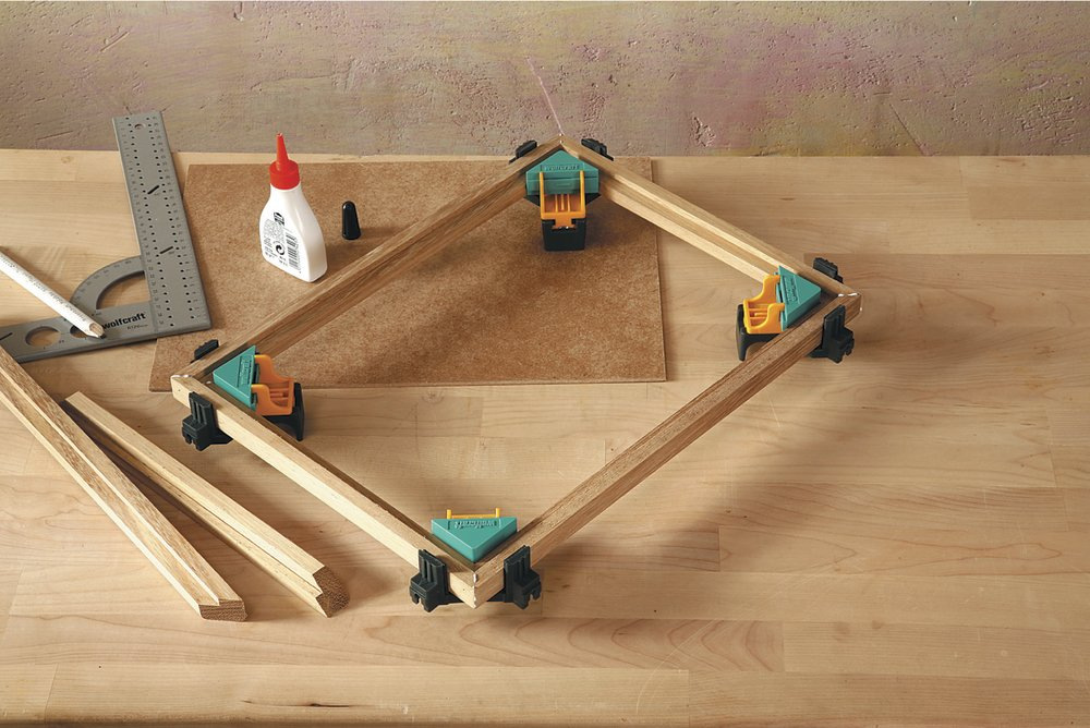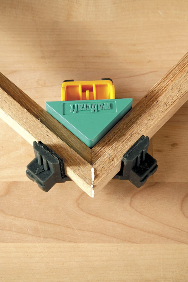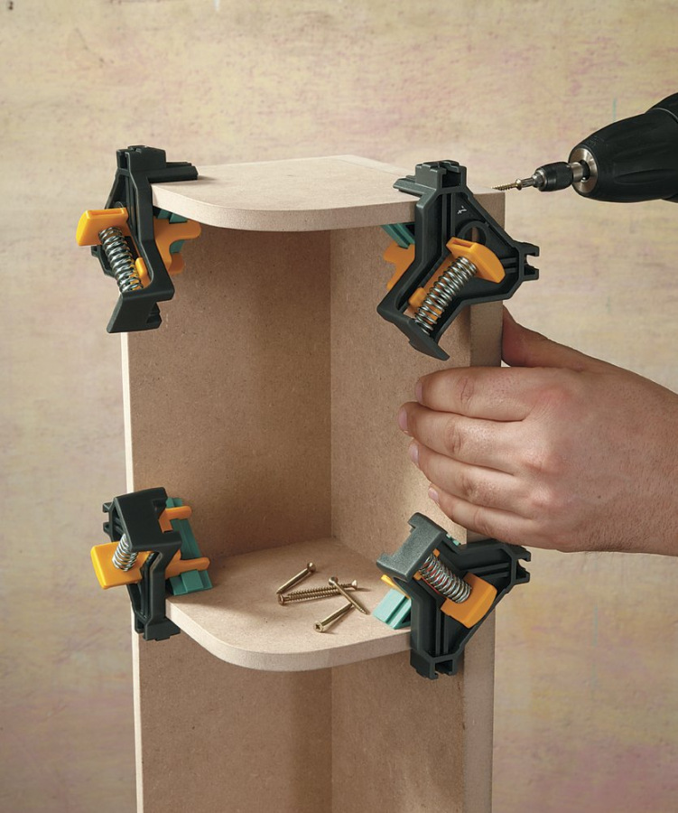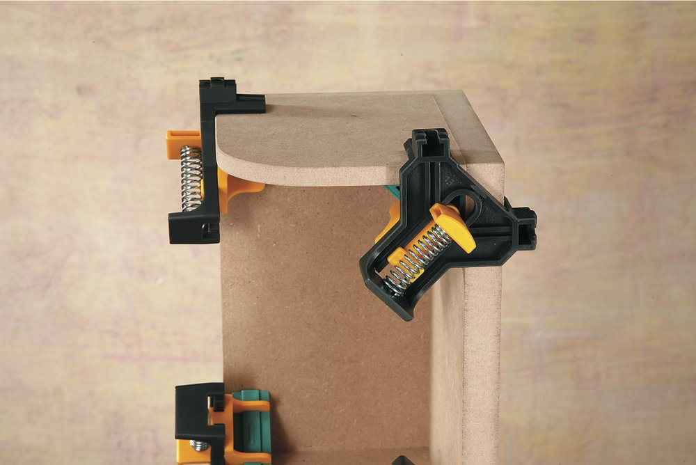 K jednoduchému a rýchlemu fixovanie dosiek a rámov v uhle 90 ° napr. Pri stavbe regálov, skriniek alebo rámov, fixovací pomôcka pri skrutkovanie alebo glejenie, pre rohové a T spájanie, tiež pri rozdielnych šírkach dosiek, pre šírku dosky 10 - 22 mm, jednoručné obsloha - druhá ruka voľná pre materiál